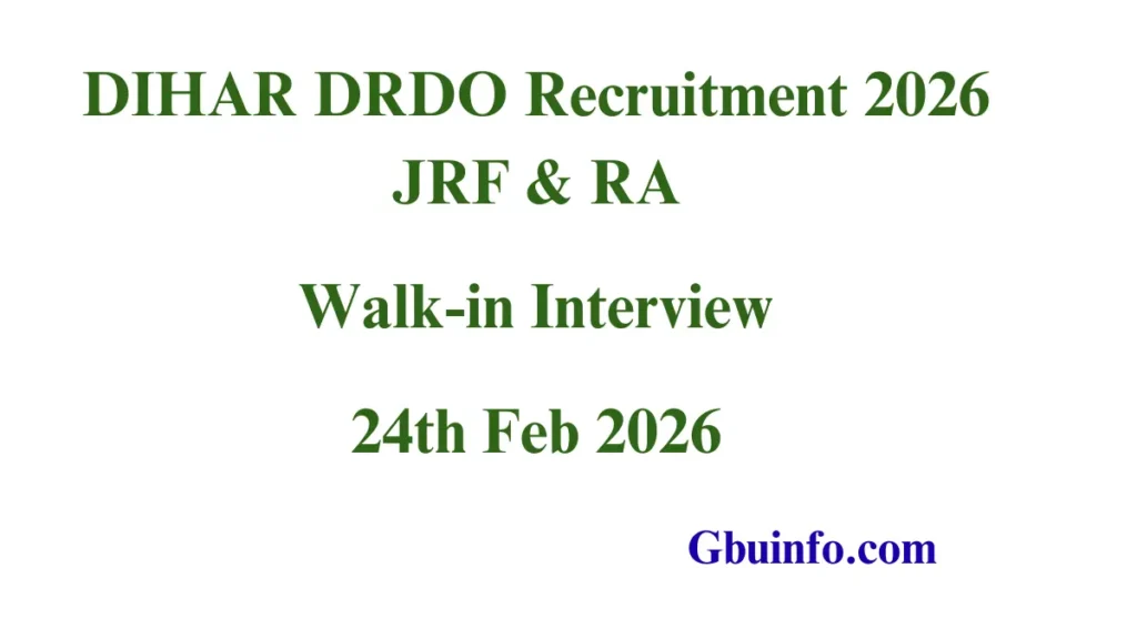 DIHAR DRDO Recruitment 2026: The Defence Institute of High Altitude Research (DIHAR) under the Defence Research & Development Organisation (DRDO) has announced a walk-in interview for Junior Research Fellow (JRF) and Research Associate (RA) posts. Eligible engineering and postgraduate candidates can attend the interview scheduled for 24 February 2026 in Chandigarh.