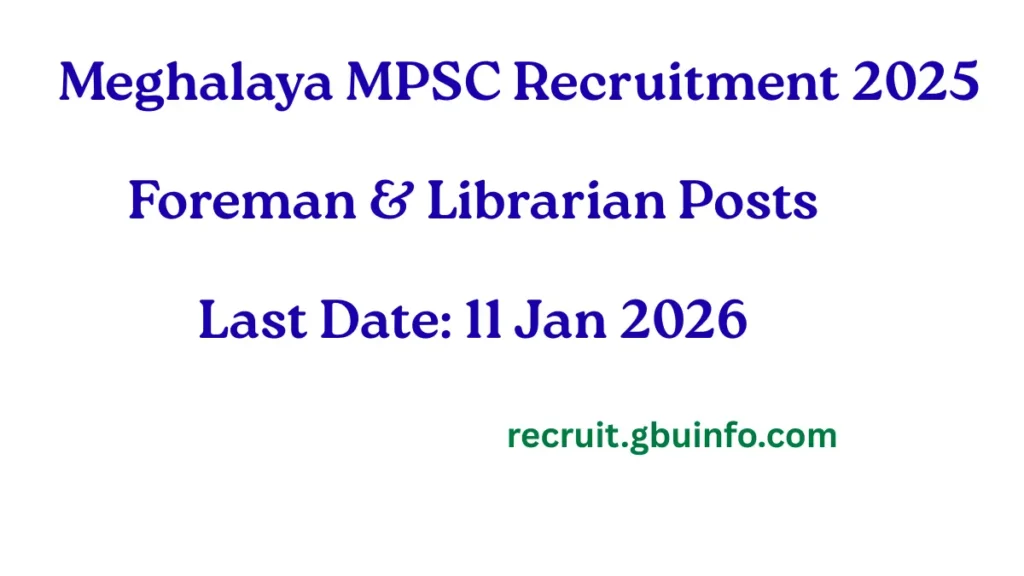 Meghalaya MPSC Recruitment 2025: Notification for Foreman & Librarian Posts – Apply Online