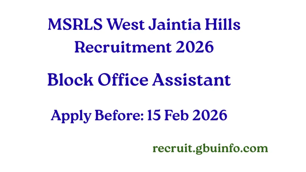 The Meghalaya State Rural Livelihoods Society (MSRLS) under the District Mission Management Unit (DMMU), West Jaintia Hills District, Jowai, has released an official recruitment advertisement for the post of Block Office Assistant on a contractual basis.