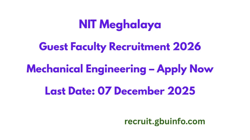 National Institute of Technology Meghalaya (NIT Meghalaya), Sohra, has released an official notification inviting applications for the post of Guest Faculty in the Department of Mechanical Engineering for the Spring Semester 2026.