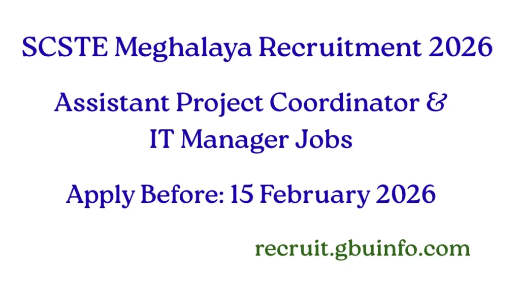 SCSTE Meghalaya Recruitment 2026 – Job Overview